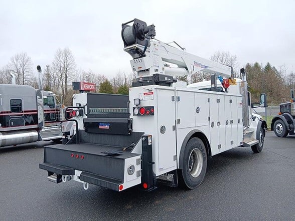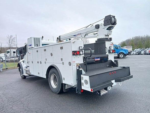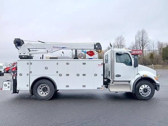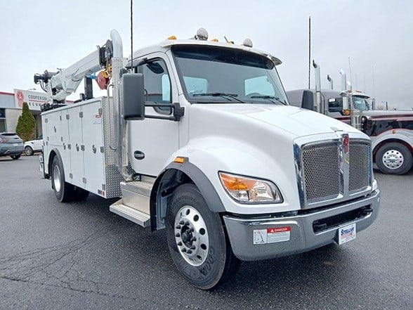 New Kenworth T480 Service Truck for sale. Features: Stellar TMAX3S-14' Aluminum mechanic body with Aluminum Doors, All Compartments raised to 60"H, Torsion Box understructure with isolated crane compartment, Master-Lock system, exterior LED DOT light package, 22"D X 52" and 60"H side packs, 168" long, 30" work bench bumper with thru compartment, equipped to handle dual out and down stabilizers, eight (8) recessed cargo tie-downs, two (2) rear mounted grab handles, dual-seal automotive type compartment weather seal, rubber fenderettes,14 ga.overlapped doors on SS1V, CS1V,14 ga.overlapped doors on horizontal compartments, 12" fold down tailgate (painted black), 2 & 3-point stainless steel compression latches, stainless steel "Billet Style" hinges, spring loaded door stops, pintle hitch mount, prime painted A40 galvanneal, undercoated. Single Vertical Exhaust, 50-gallon Fuel Capacity, Power Locks, Power Windows, and more. More Than a Typical Kenworth Dealer - In addition to our extensive inventory, you’ll find fully-stocked truck parts stores, full-service truck repair shops with certified service technicians, and a body shop. When comparing Kenworth truck dealerships, Coopersburg & Liberty Kenworth is sure to rank high, with a selection of services and inventory that can’t be matched.