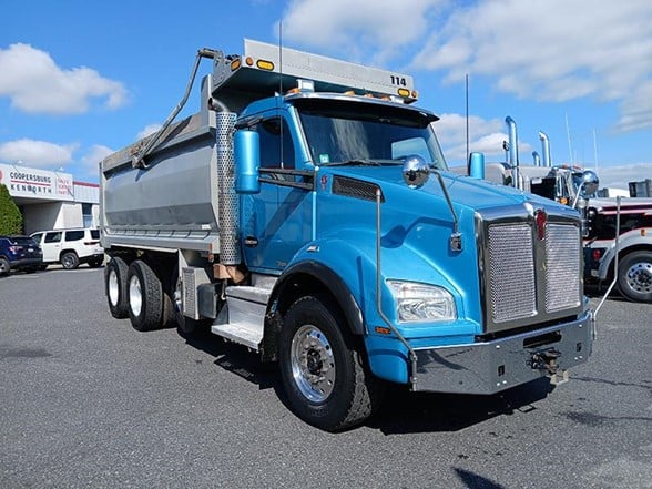 **MAKE AN OFFER!** Used Kenworth T880 Tri Axle Dump Truck for sale. Features: 17 ft. 9 in. Steel J & J Dump Body, 18,740 lb. Non-steerable Lift Axle, Auto Tarper, Coal Chute, Pintle Hook, Block Heater, Hood-mounted Mirrors, Chrome Bumper, Single Vertical Exhaust, Chrome Sun Visor, Disc Brakes, Double Frame, and more. Coopersburg & Liberty Kenworth has new trucks, used trucks, trailers, and parts for sale. Locations: Coopersburg, PA (near Allentown), Swedesboro, NJ (near Philadelphia), Bristol, PA (near Philadelphia), and TRP Parts in Pottstown, PA (near Reading).